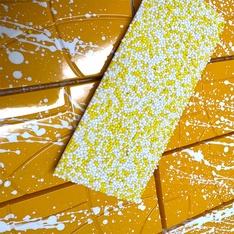 The Lemon Fizz chocolate bar is an experience for your senses! It is bursting with lemon flavor balanced by the creamy sweetness of white chocolate. And then there's the FIZZ! That's right, you'll experience carbonated bubbles as well a delicate crunch from a bed of brightly colored nonpareils. There are just so many things going right in the this bar!